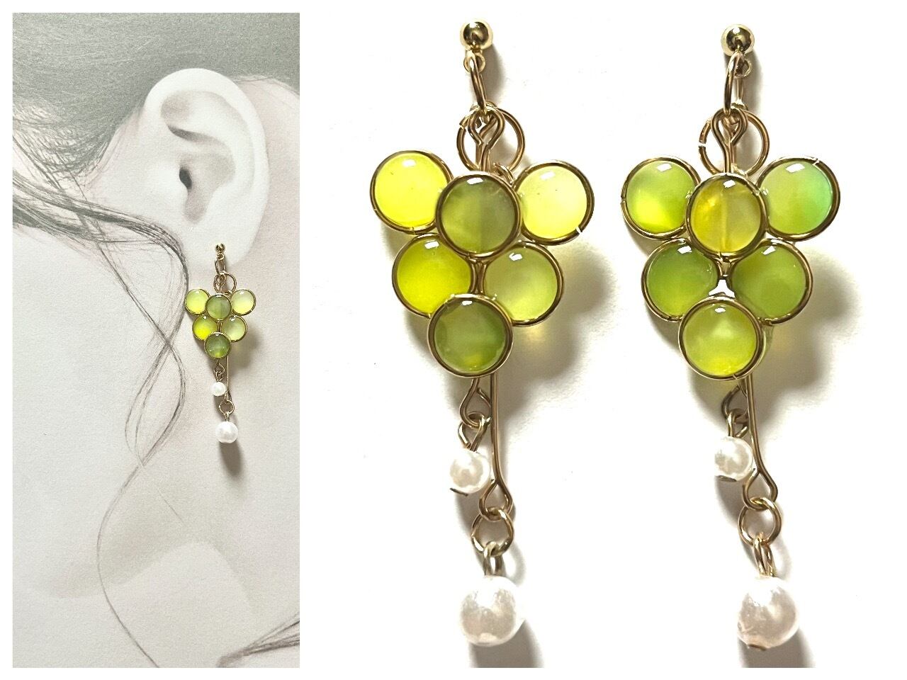 洗練された美しさを演出する「白葡萄のひかり」。 清楚で優雅な透明感のある白葡萄をイメージしたピアス。