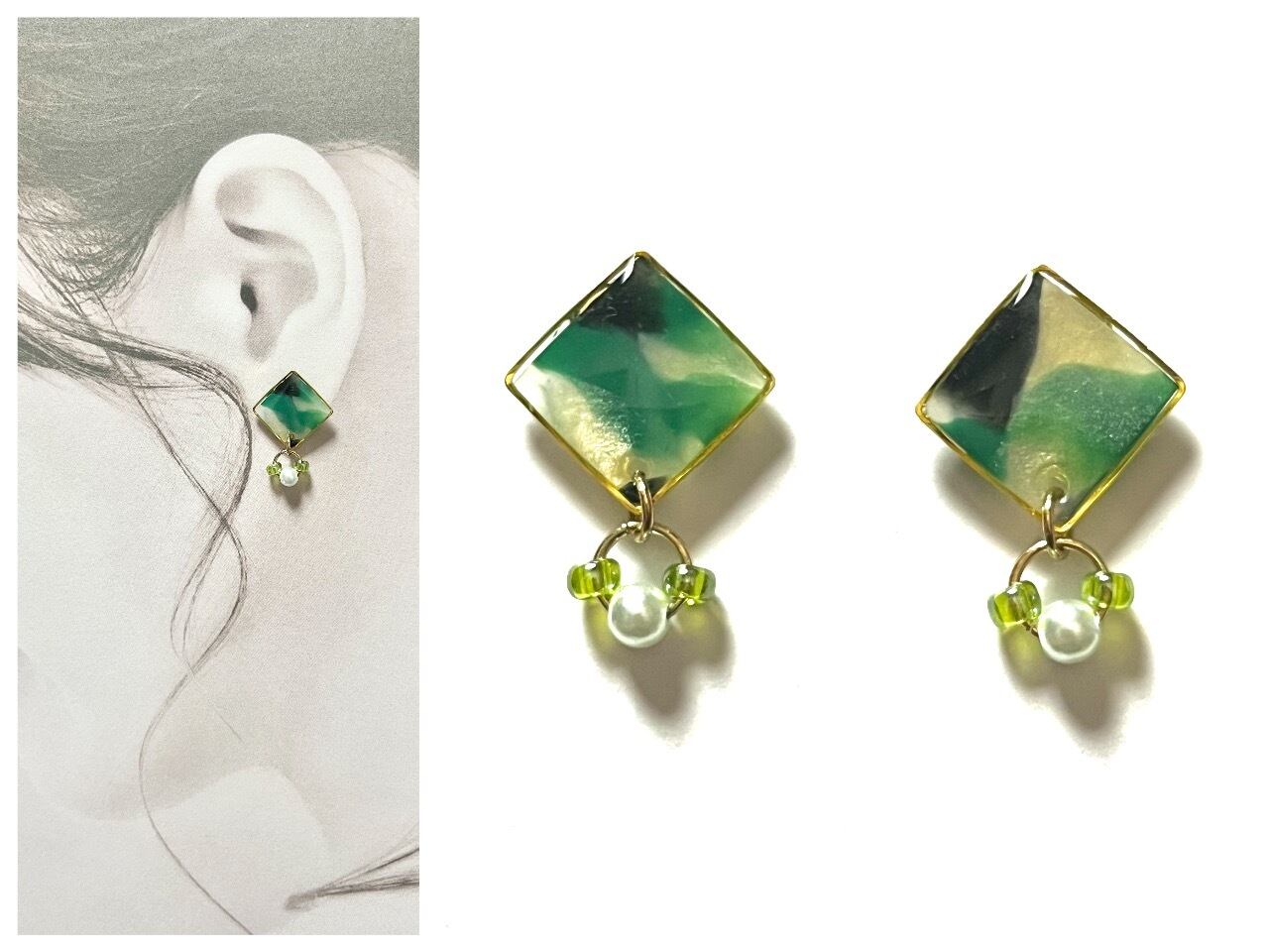 新鮮な緑の風が吹き抜けるようなイメージのピアス。