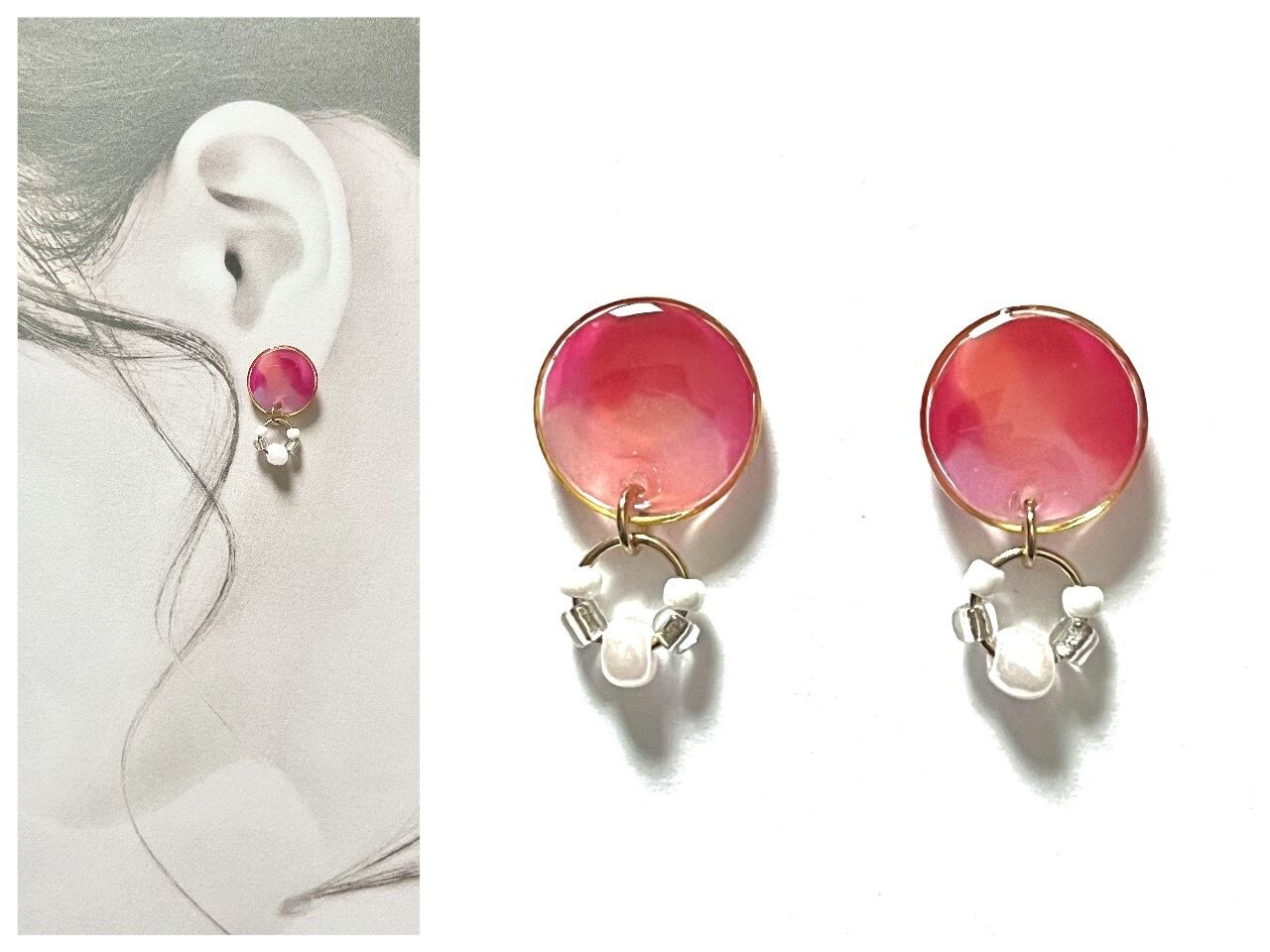 夕焼け空のような鮮やかな色合いのピアス。