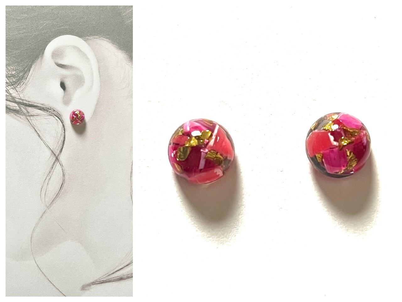 心躍る深い赤色を基調にしたピアス。