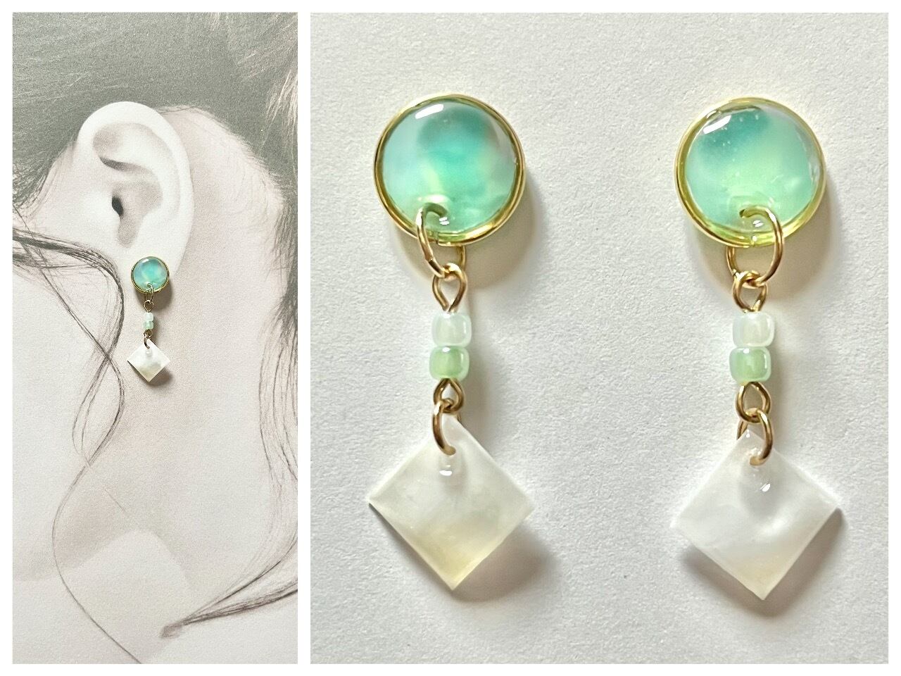 清らかな白を基にしたデザインが、耳元でリゾート気分を演出するピアス。