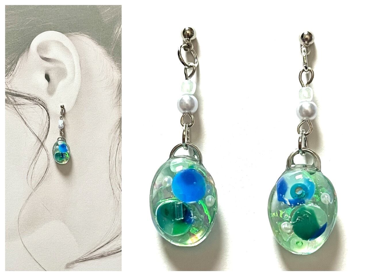 美しい青と緑が絶妙に組み合わさったデザインが、耳元で新鮮な風を運んでくれるピアス。