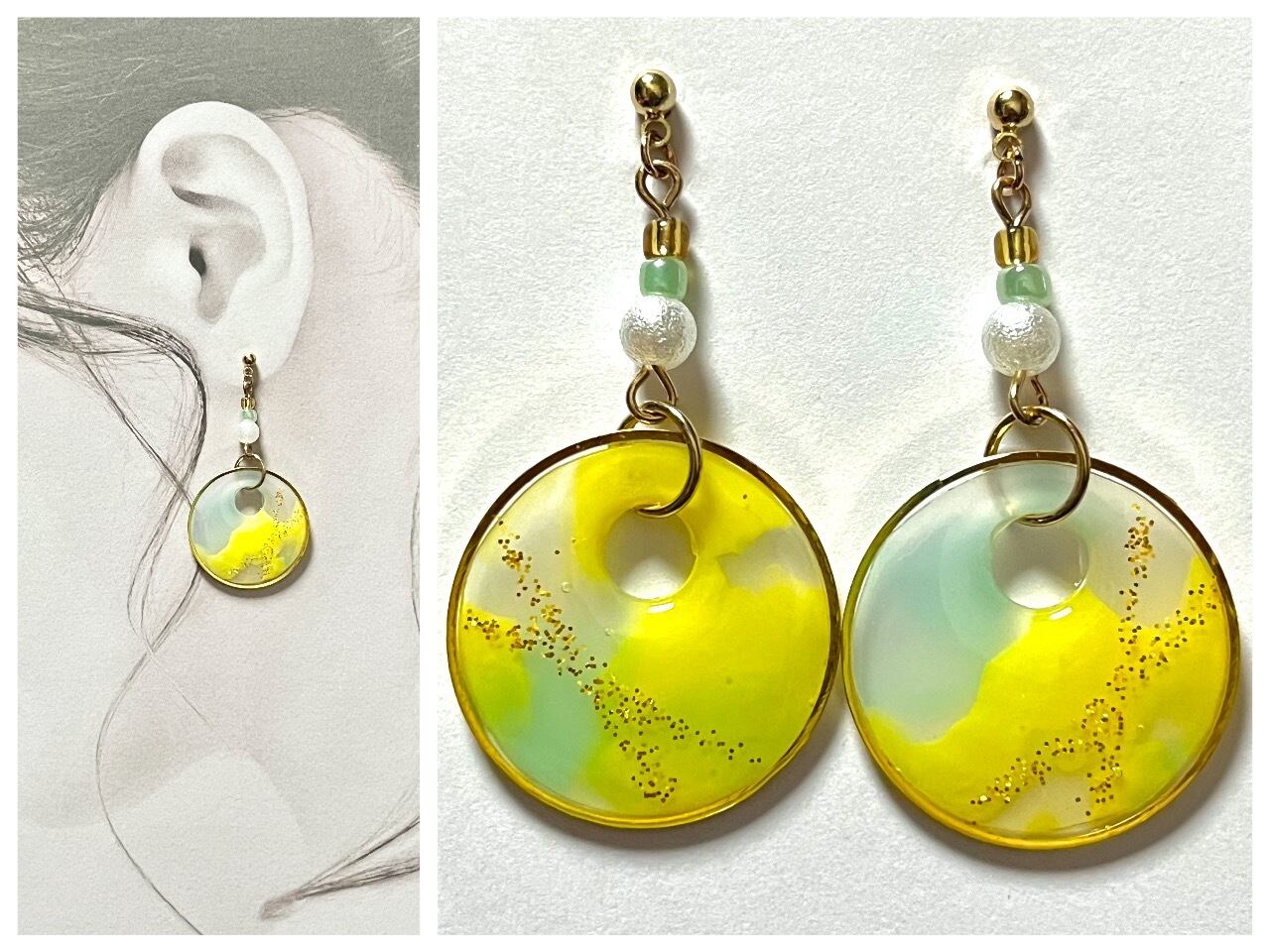 繊細なデザインが耳元で華やかに輝き、あなたのスタイルに明るい幸福感を添えてくれるピアスです。