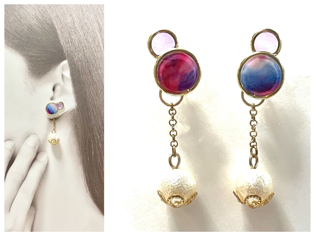 美しいグラデーションのデザインが耳元で優雅に揺れ、あなたのスタイルに穏やかな明け方の空気を漂わせてくれるピアスです。